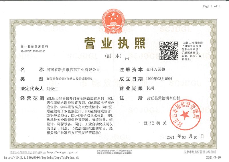 河南省新鄉市啟東工業有限公司始建于1987年,是專注研發、生產自動化儀器儀表(主要與壓力容器、鍋爐等容器配套使用)的廠家。主要產品有液位計(磁敏雙色型、磁翻柱型等)系列、烤包器熄火聯控裝置系列、壓力容器快開門安全聯鎖保護裝置系列、鍋爐報警器系列。二十多年來,公司產品暢銷國內并遠銷俄羅斯、蒙古與東南亞,深得廣大用戶的信賴和好評。我們多年來致力于自動化儀器儀表的研制生產,公司現具有完善的生產、試驗、檢測手段和設備??萍紕撔隆⒄\信服務,是我們不變的經營理念,我們將以強有力的技術支持及售后竭誠為客戶提供良好的服務。  2012年我公司成功研發了KCL系列烤包器熄火聯控裝置,并于2013年2月2日榮獲中華人民共和國國家知識產權局辦法的《實用新型**證書》<**號:2021202257735>該產品廣泛應用于唐鋼等大型鋼鐵企業,為烤包器安全作業提供了有力的保障?! ?002年我公司成功研發磁敏電子雙色液位計獨特的高亮度LED紅綠雙色顯示,獲得了專家的首肯和用戶的一致好評。在此基礎上我公司研發人員十年磨一劍,致力于XQFB-1防爆型磁敏雙色液位計的研發,于2013年12月27日由國家防爆電器產品質量監督檢驗中心檢驗合格并頒發防爆合格證書<編號:cnex19.0883>。該產品性能得到了充分的發揮,廣泛應用于含有Ⅱ類A·B級T1-T4組可燃氣體或蒸汽與空氣混合形成的爆炸性混合物的0區、1區危險場所。連接用戶DCS或PLC系統實現遠距離集中顯示和控制,從而實現節能、數字化管理。為用戶增加了一定的經濟效益和社會效益,。2014年公司成功申請了夢潤儀表的logo,新的品牌新的形象,夢潤儀表是啟東的LOGO, 歡迎新老用戶前來洽談合作?! ∥覀円蝗缂韧刈⒅乜蒲械耐度耄瑧{借產品的不斷更新、加大科技含量,進一步拓展市場。我們相信品質成就未來,以過硬質量、優惠價格、完善的售后服務熱忱歡迎廣大客戶來我司視察指導、洽談業務;精誠合作,共創輝煌!